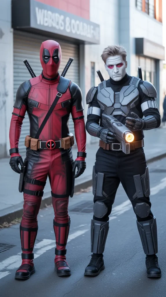 For the friends who love humor and chaos, Deadpool and Cable bring it. Deadpool’s red-and-black suit is instantly fun, while Cable’s cyborg armor makes the pair unforgettable. This combo is great if you want a unique couple Halloween vibe but still keep it playful. Also, Deadpool’s sarcastic one-liners are basically a party trick in themselves. If you want to look cool but also make people laugh, this duo is unbeatable. 💥