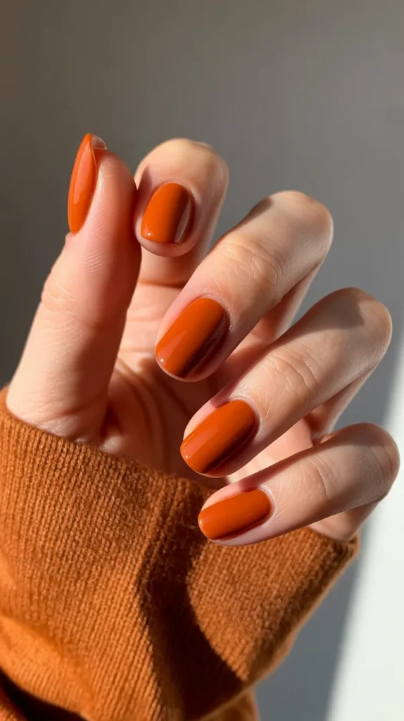 Name a better fall shade I’ll wait. Burnt orange with a glossy finish instantly adds that cozy autumn warmth to your look. It’s basically the nail polish version of crunchy leaves.