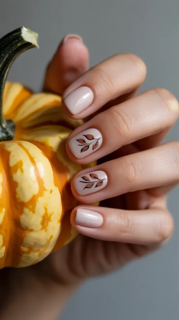 Neutral nails with a tiny leaf detail? Instant fall charm. 🍂 These harvest nails prove that minimal nail art can still be eye-catching. Perfect for subtle seasonal vibes.