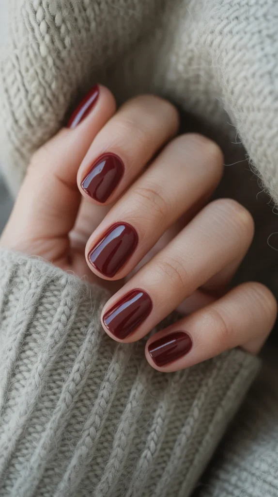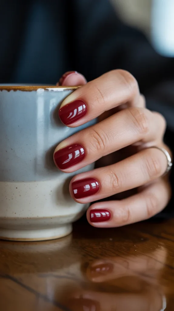 Short burgundy nails are timeless for fall. 🍷 Sleek, bold, and easy to wear, they’re the kind of fall season nails that work for literally every occasion.