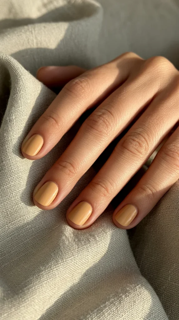 A beige nude polish with golden undertones feels soft but still seasonal. 🌾 These are subtle harvest nails that glow in cozy fall light. Simple, chic, and wearable for every day.