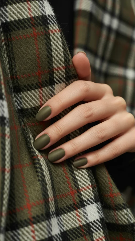 Matte olive nails are cozy, earthy, and always trendy. 🌿 These easy autumn nails pair perfectly with layered fall outfits. A muted but stylish shade that screams autumn chic.