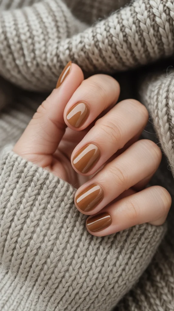 Caramel brown nails on a short shape are as easy as it gets. 🍬 They’re polished but still practical, making them great everyday fall season nails. Minimal but never boring.