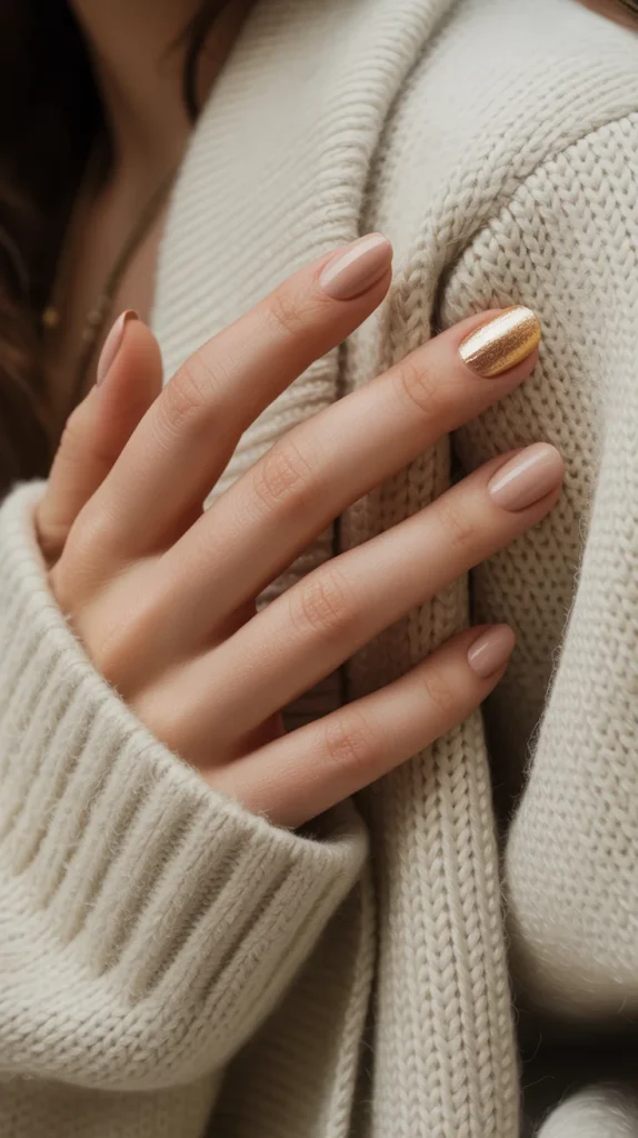 Nude nails with one gold accent = instant chic. 🌟 These harvest nails are simple but festive, adding just enough sparkle for fall events. Effortless yet stylish.