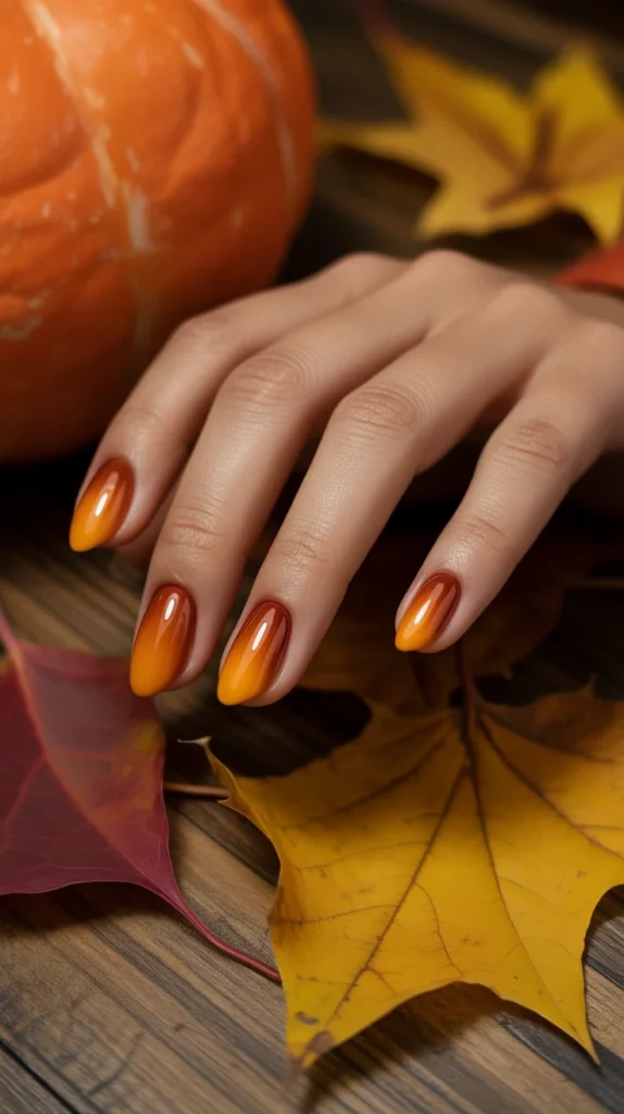 Orange blending into brown makes nails look like a pumpkin patch. 🎃 These fall nails are playful but still polished. A fun way to wear seasonal tones without overcomplicating the design.