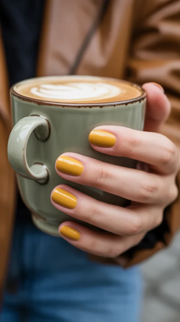 Mustard yellow nails scream autumn warmth. 🌻 They’re bold but still simple enough for everyday. Definitely one of the best fall nail colors for a cozy seasonal look.