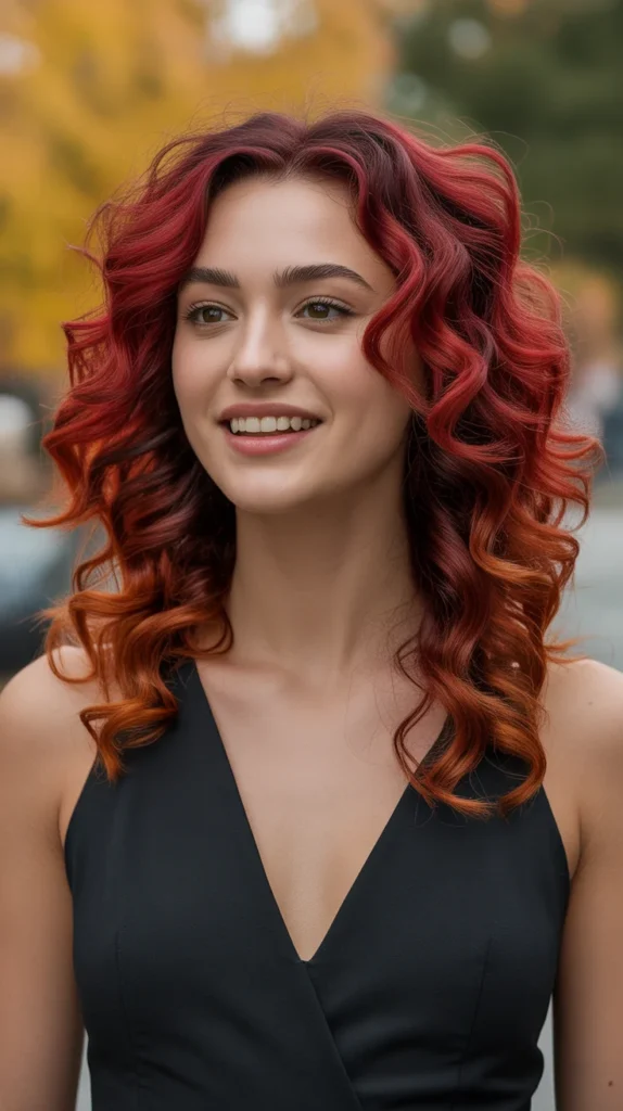 Scarlet is bold, fearless, and perfect for anyone ready to stand out. 🔥 On curls, this vibrant red tone looks dramatic and full of energy. It’s a shade that instantly makes a statement while still working beautifully with autumn fashion. The fiery tones sparkle in natural light, giving hair dimension and attitude. Scarlet curls are all about playful confidence.