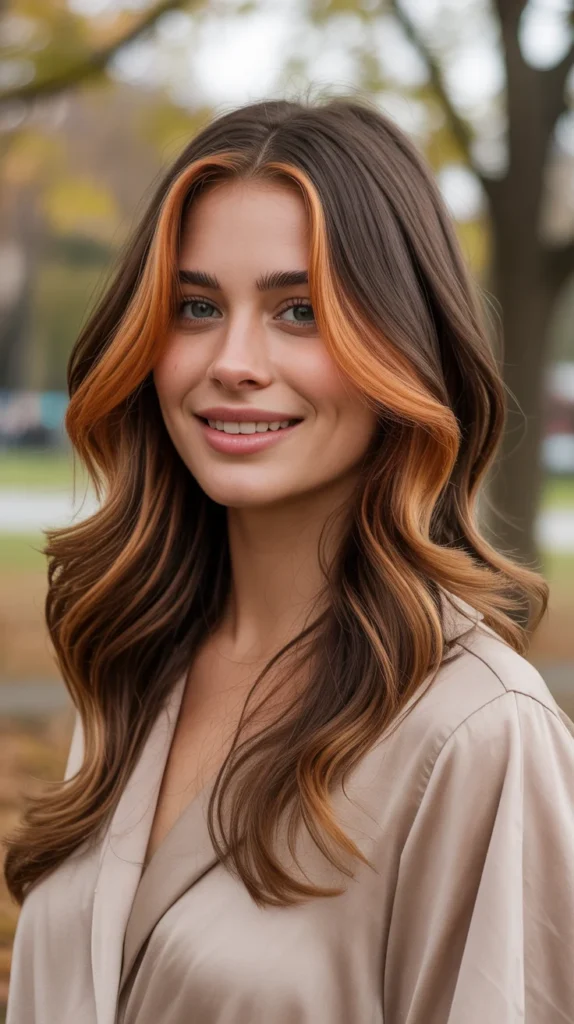 Golden copper highlights bring instant warmth to brunette bases. 🔥 Soft ribbons of copper woven into the hair add shine and depth without overwhelming your natural color. On layered cuts, the highlights shimmer with movement, creating a glossy, glowing effect. It’s an easy way to refresh your look for fall without going full red. Golden copper is subtle, chic, and perfect for anyone craving autumn energy.