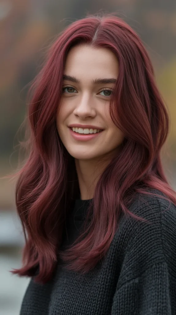 Deep burgundy is moody, bold, and oh-so-perfect for autumn nights. 🍷 This glossy shade adds richness and drama, catching the light with a luxurious sheen. On straight or curled styles, the color feels bold but still wearable. Burgundy flatters a range of skin tones and works just as well for everyday chic as it does for festive evenings. It’s the kind of fall hair that makes you feel instantly confident.