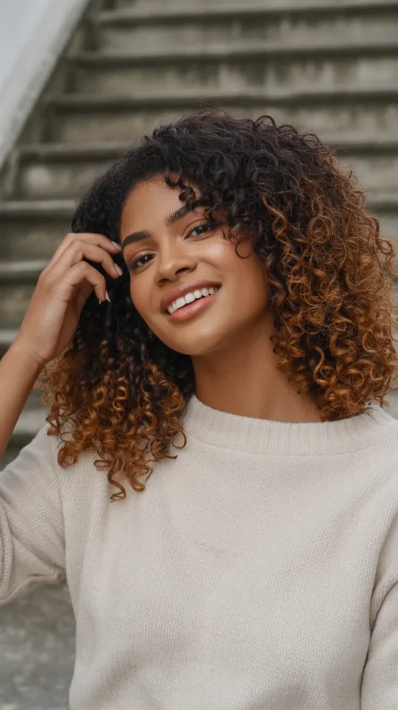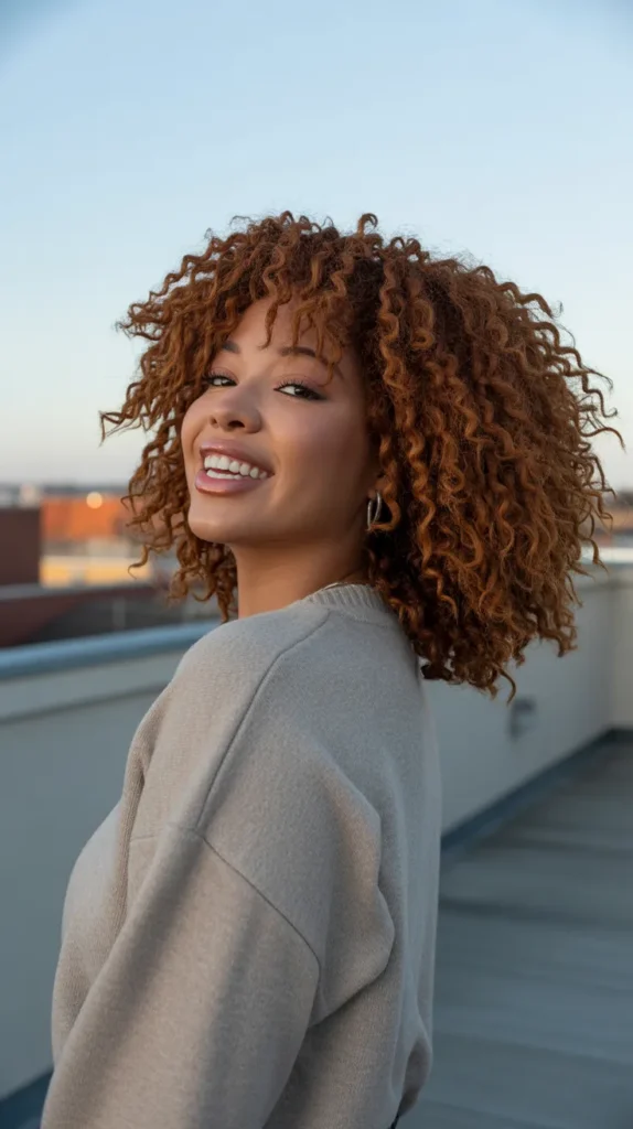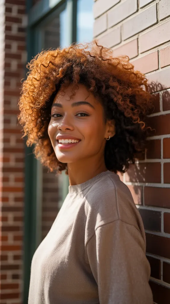 Cinnamon ombre curls bring cozy vibes into your hair routine. Starting with dark roots and fading into cinnamon ends, the style feels warm and seasonal ☕. It’s a playful twist on natural curls and adds dimension without losing your texture. Cinnamon is one of the best autumn hair shades to try if you love color but want it to blend naturally. Perfect for cozy weekends or fall photoshoots.