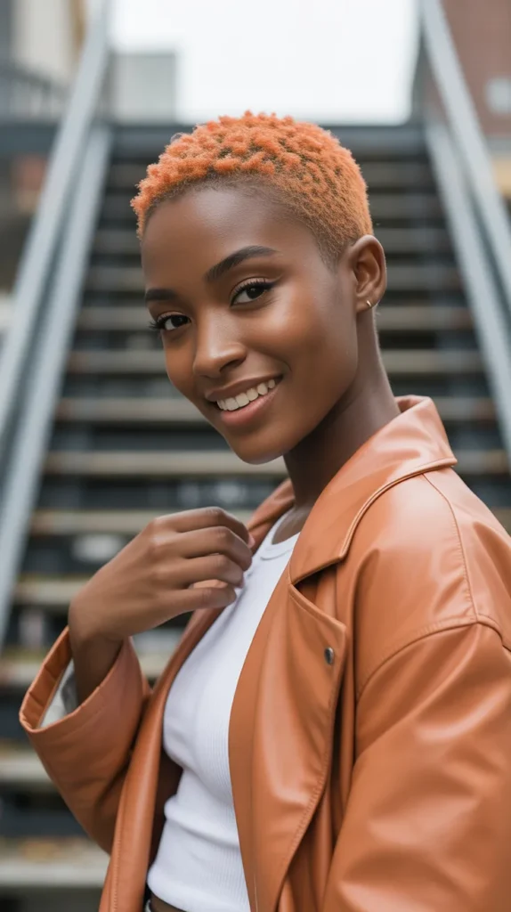 Burnt orange tapered cuts bring bold, fashion-forward flair 🔥. The short natural style with orange hues screams confidence and autumn spirit. On dark skin, this fall hair color looks striking and chic at the same time. It’s perfect for women who want to make a statement and love standing out. Burnt orange is playful, edgy, and totally fall-ready.