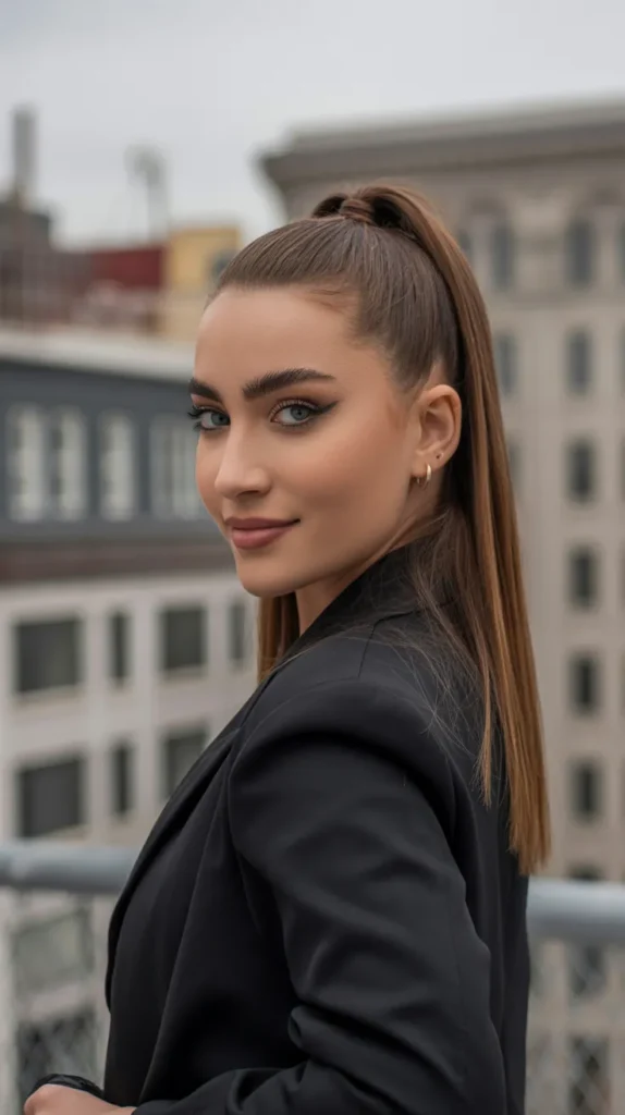 Don’t underestimate the power of a ponytail, especially in fall. A sleek chestnut brunette ponytail feels polished, classy, and chic 🐎. It’s perfect for office days, date nights, or just when you want to look put together without much effort. The chestnut tone adds warmth so the style never feels boring. Add a scrunchie or ribbon, and suddenly your ponytail looks Pinterest-worthy. See what I mean? Easy but stylish.