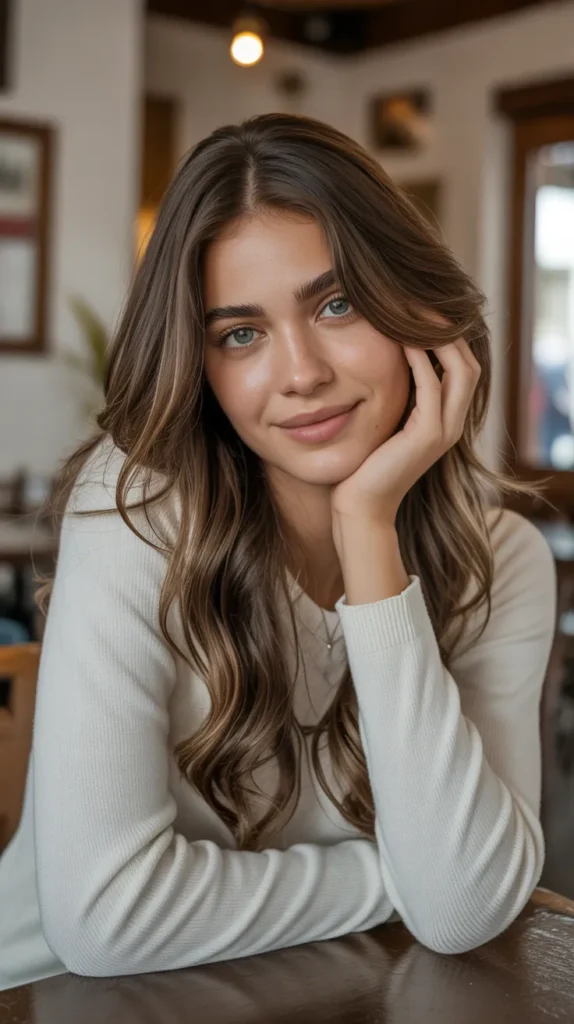 Mocha tones in long brunette waves feel soft, cozy, and wearable all season. The color is rich but not too bold, giving your hair that “just right” balance ☕. These waves are perfect for everything from pumpkin patch photos to holiday parties. The best part? Mocha brunette hair color looks flattering on pretty much everyone. Ever wanted a low-drama, high-style fall refresh? This one’s a winner.