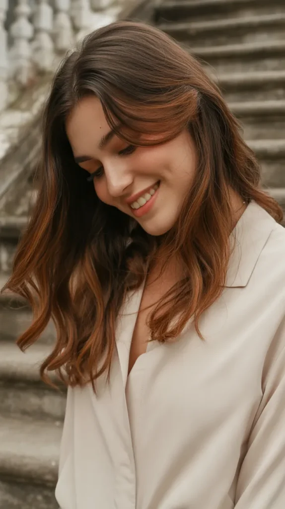 Nothing says fall like auburn tones woven through brunette hair 🔥. Auburn brunette balayage gives you that fiery, seasonal energy without going full red. The blend looks amazing in natural light and adds warmth to every style, from curls to sleek waves. IMO, it’s the kind of hair that turns heads at parties and still looks soft during everyday errands. Want to feel bold but not over-the-top? This is your sweet spot.