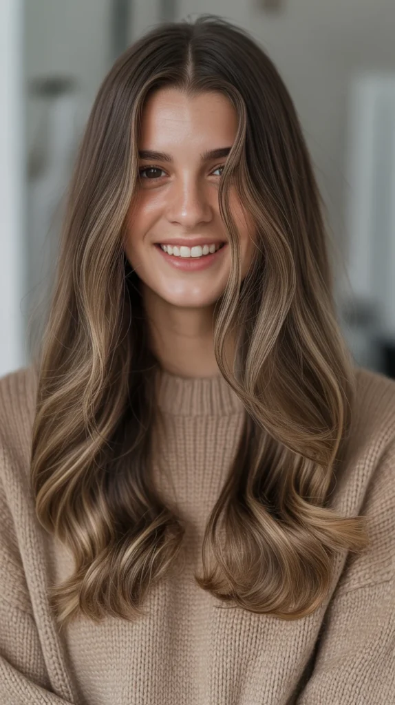 19. Soft Mocha Waves with Subtle Balayage