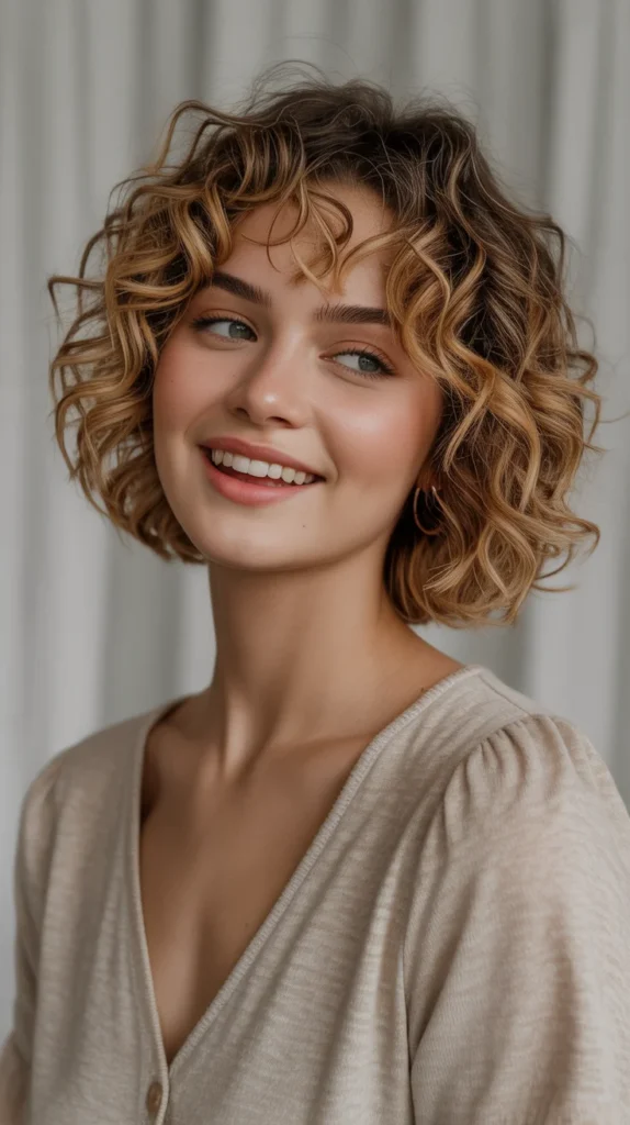 17. Golden Caramel Curly Bob