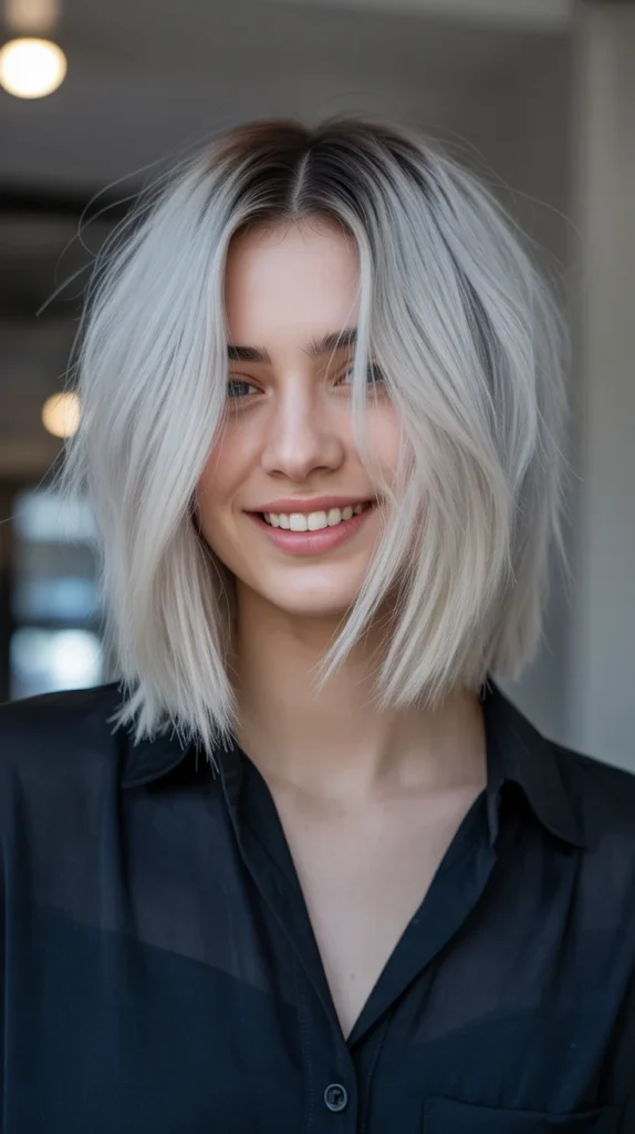 Platinum blonde doesnβt have to be summery dark roots make it autumn-ready. On a straight mid-length cut, the contrast adds edge and modern flair. βοΈ The cool platinum keeps things bold, while the roots keep it low maintenance. Itβs dramatic, sleek, and totally Instagram-worthy. If you love icy tones in cooler months, this fall blonde hair color delivers.