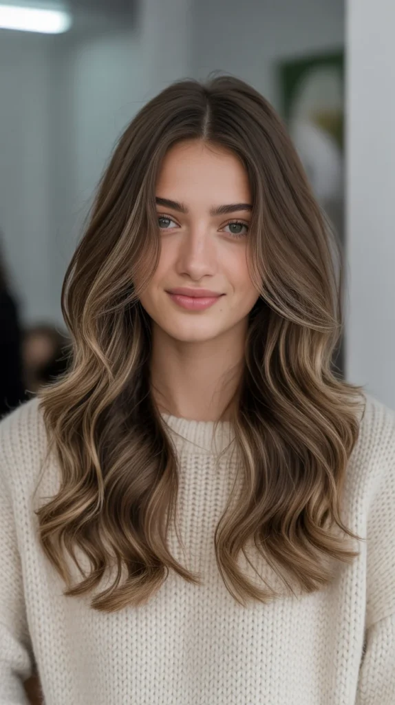 Mocha brown is cozy, chic, and timeless. Adding a hint of subtle balayage gives the waves more depth without creating too much contrast. β On long, flowing hair, the shade looks soft and wearable. Itβs one of those autumn hair looks that never feels overdone but always feels stylish. Perfect if you want low-maintenance color with polished finish.