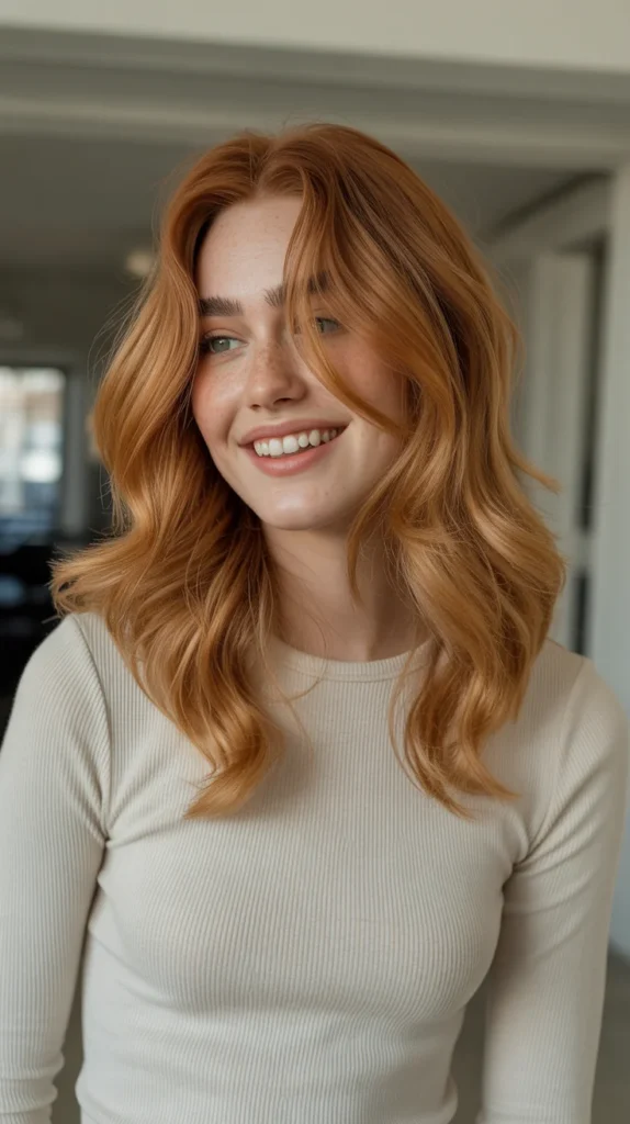 Copper melt blends auburn and golden tones into one cozy autumn shade. On wavy mid-length cuts, the color flows seamlessly, creating that βlit from withinβ glow. π₯ Itβs vibrant enough to make a statement but warm enough to feel natural. The waves give it extra movement, allowing the tones to shine from every angle. Copper melt is a true autumn hair essential for those who want their look to radiate fall vibes.