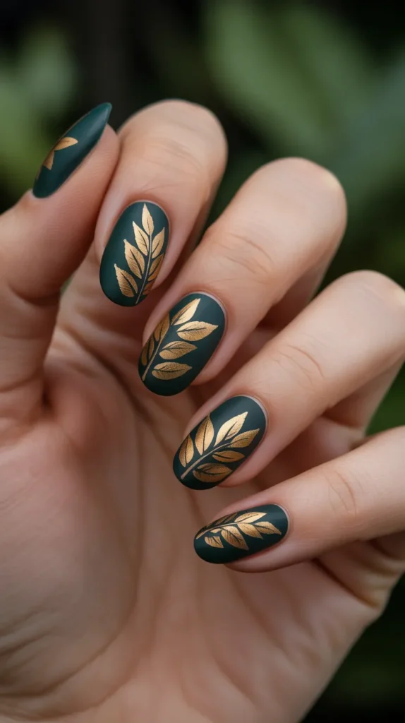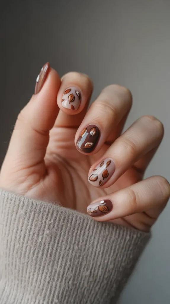 Why stop at leaves? Add in a few acorns for a rustic touch. Brown bases decorated with tiny nuts and leafy accents bring cozy woodland vibes right to your fingertips.