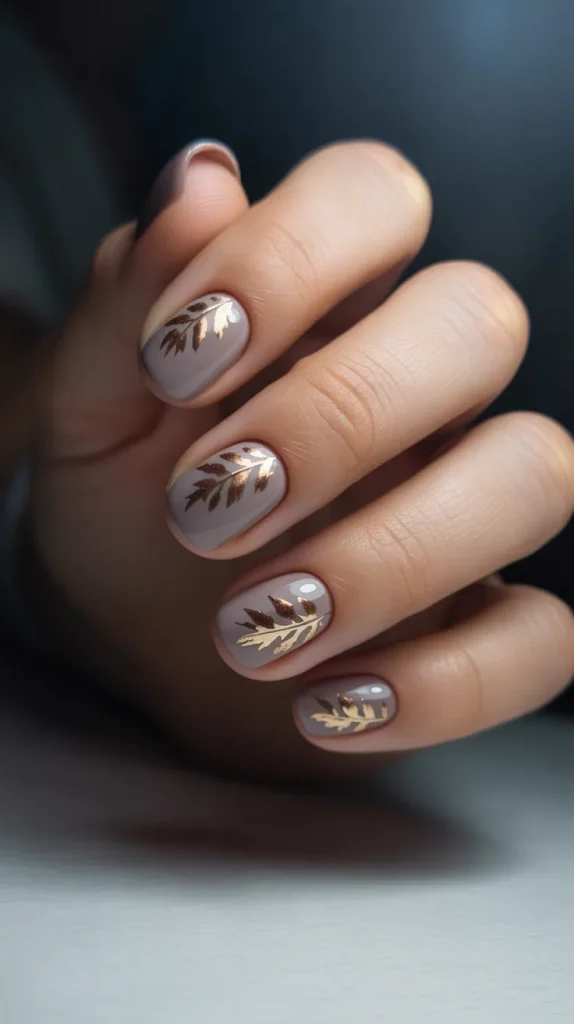 For something classy, go with golden oak designs. A taupe base topped with shimmering gold oak leaves makes your nails feel like a luxe version of fall. Perfect if you love a little sparkle without going over the top.