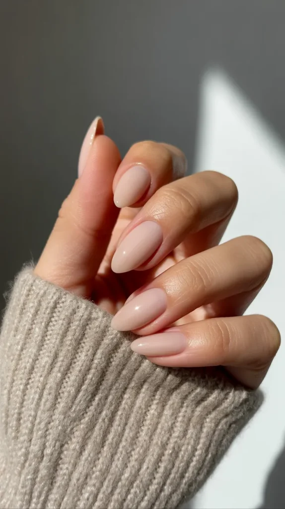 If you love a polished, “I woke up like this” vibe, go neutral. Soft beige almond nails with a glossy shine pair effortlessly with every fall outfit. They’re the definition of classy nails that never go out of style.