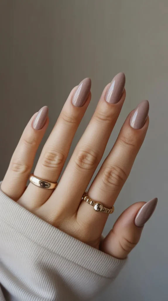 Not into super long nails? No problem. A short almond shape in taupe nude looks simple, stylish, and totally wearable for every day. These almond nails for autumn are proof that classy doesn’t need to be complicated.
