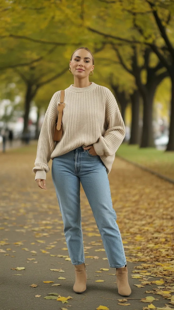 When it comes to cozy fashion, nothing beats the combination of an oversized knit sweater and straight jeans. This look is perfect for those crisp autumn days when you want to feel warm and stylish at the same time.