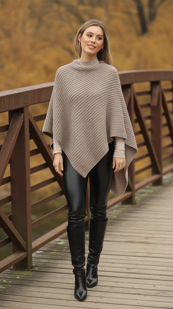 When it comes to cozy fashion, a knit poncho paired with leather leggings is a winning combo for fall. This look blends comfort with style effortlessly. The soft texture of the poncho creates a warm layer, perfect for those crisp autumn days.