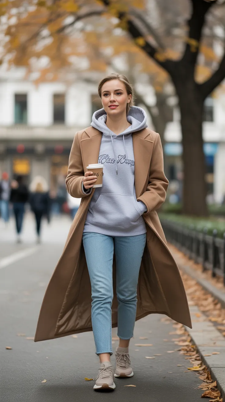 The hoodie and long coat combo is a perfect match for fall. It combines comfort with style, making it a go-to choice for those crisp autumn days. The cozy hoodie adds a relaxed vibe, while the long coat elevates the look, giving it a chic touch.