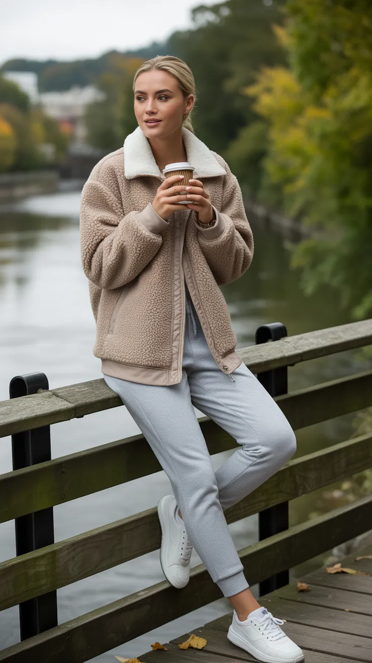 Fall is the perfect time to embrace cozy fashion, and a sherpa jacket paired with joggers is a winning combo. This outfit strikes a balance between comfort and style, making it ideal for those crisp autumn days.