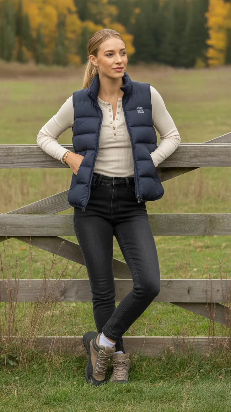 The puffer vest paired with a henley top is a go-to look for fall. This combination is perfect for those chilly days when you want to stay warm without sacrificing style. The vest adds a layer of coziness, while the henley top keeps things casual and comfortable.