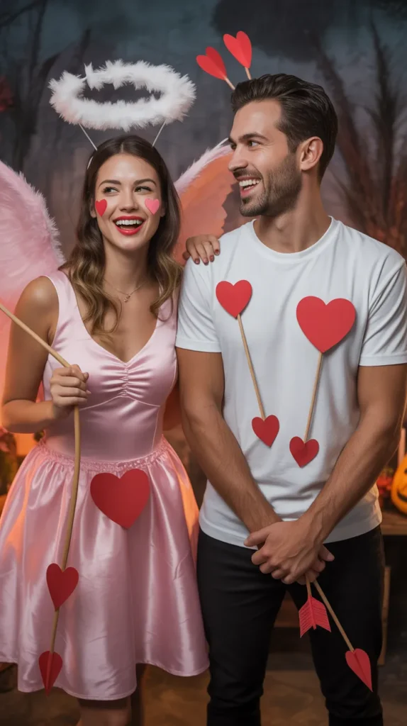 Valentineβs Day meets Halloween with this cheeky costume idea. π One partner plays Cupid, complete with wings, bow, and arrows. The other becomes βlove struck,β wearing heart-themed accessories or even a shirt with an arrow sticking out. Itβs funny, flirty, and totally in the spirit of cute costumes. Plus, the symbolism makes it a crowd favorite at couple parties. This idea lets you lean into humor while still showing off your romantic side. Add glitter or heart stickers to turn it up a notch. Cupid always hits the mark with this one.