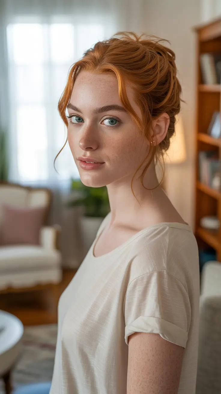 The messy bun is a fantastic hairstyle that perfectly combines style and comfort. This look is especially charming when paired with light ginger hair. The warm tones of ginger hair color add a lovely glow, making it a go-to choice for casual outings or relaxed days at home.