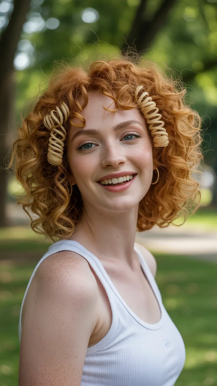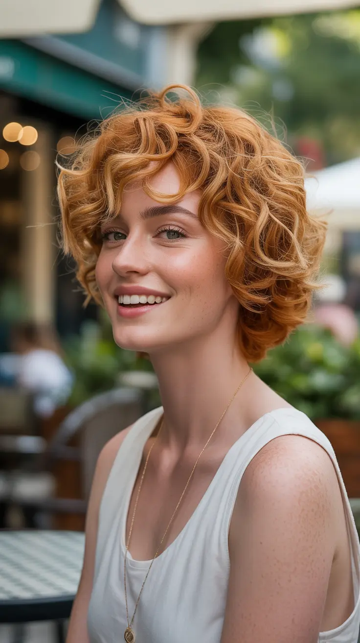 12. Short Curly Ginger Hair With Sunlit Blonde Accent Strands