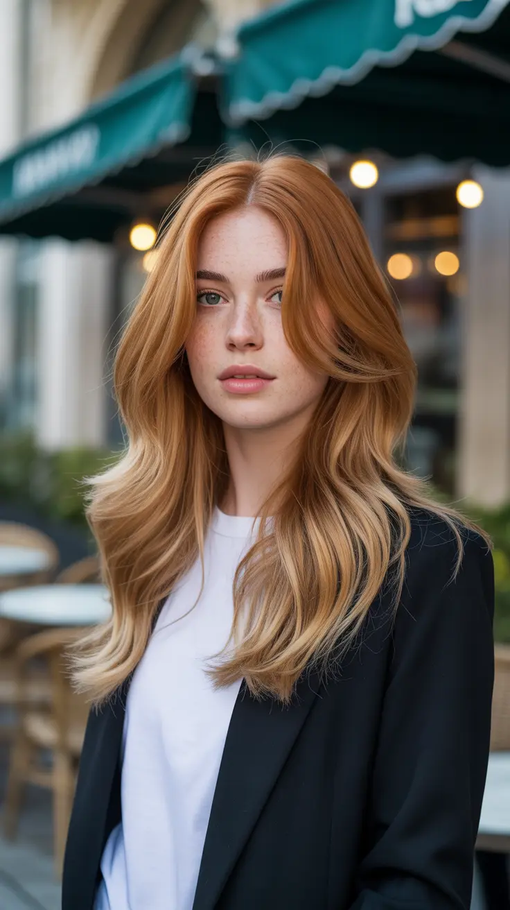 The blend of ginger and blonde is eye-catching and versatile. It works well for various skin tones, enhancing natural beauty. The layers can be styled in different ways, from beachy waves to sleek and straight, making it suitable for any occasion.