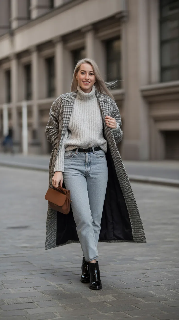 12. Light Gray Jeans With Structured Coat And Ankle Boots