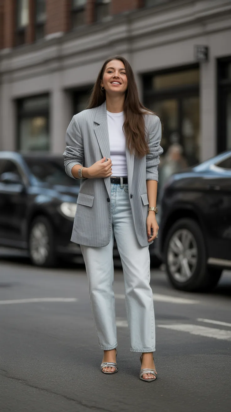2. Light Gray Straight-Leg Jeans With Oversized Blazer