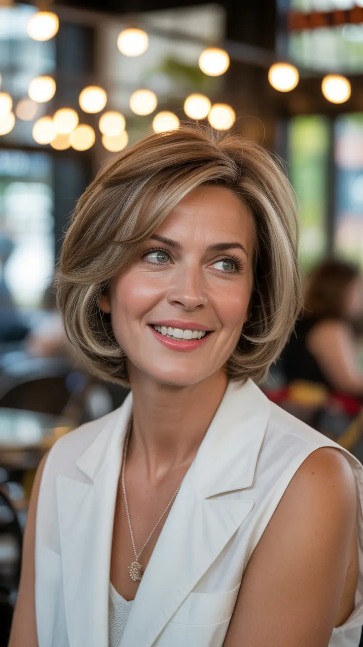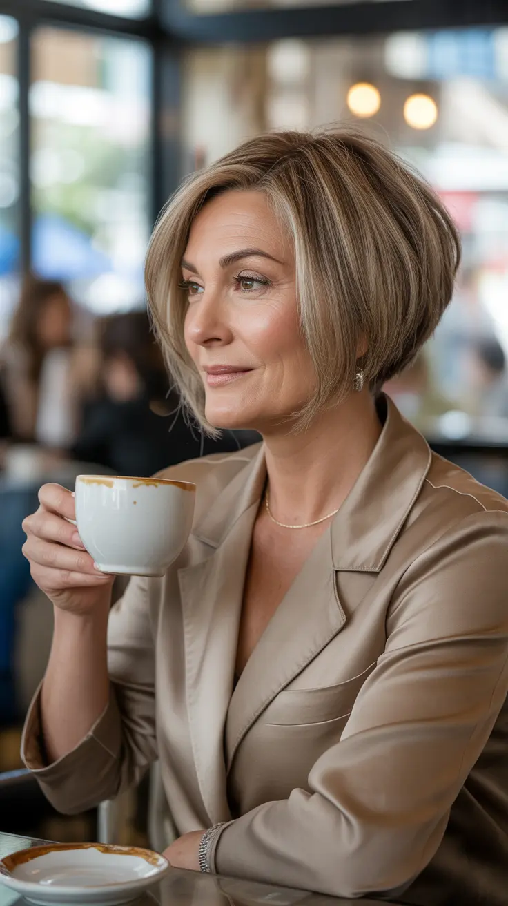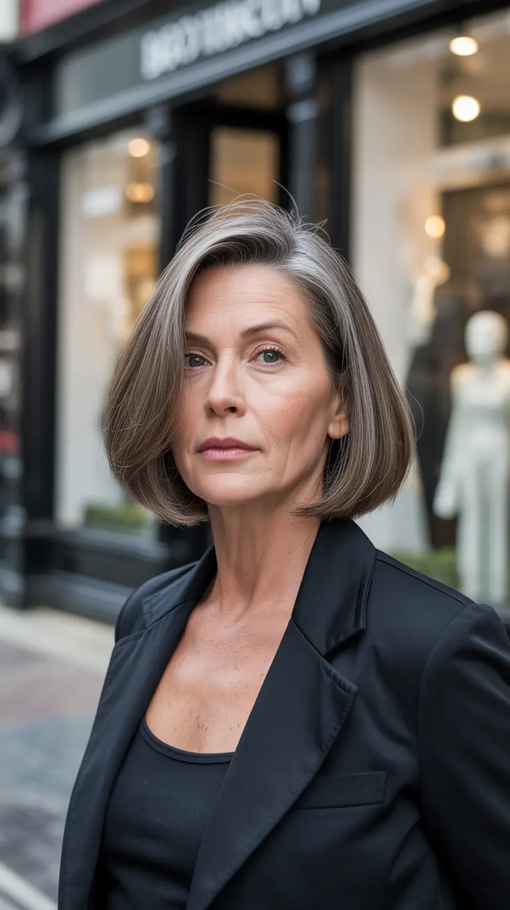 This haircut is not only stylish but also age-appropriate. It frames the face beautifully, highlighting features without overwhelming them. The chin-length cut is versatile, allowing for easy styling, whether you prefer a sleek look or something more tousled.