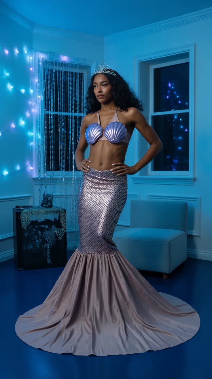 Channel your inner ocean goddess with a stunning mermaid costume! The shell bra and flowing skirt create a magical look that’s perfect for Halloween. Add some shimmering accessories to complete your enchanting vibe!