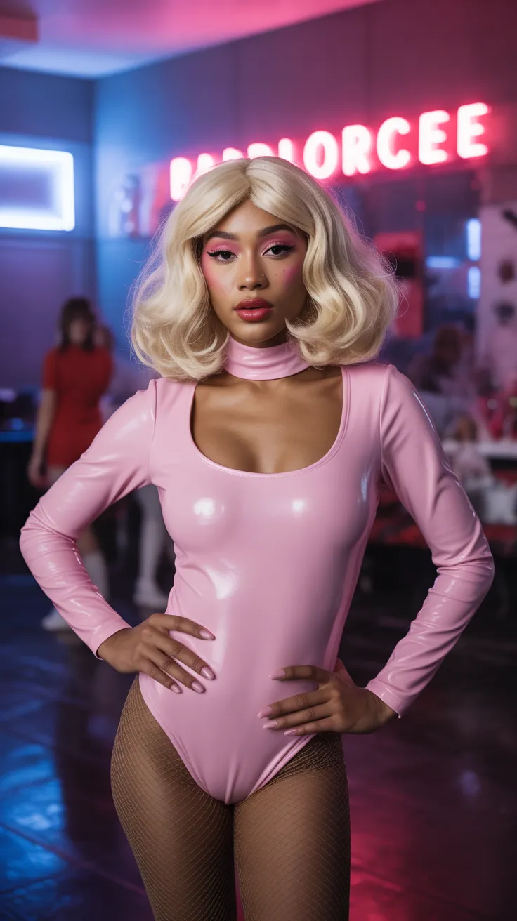 15. Barbiecore Babe In Pink Bodysuit And Blonde Wig