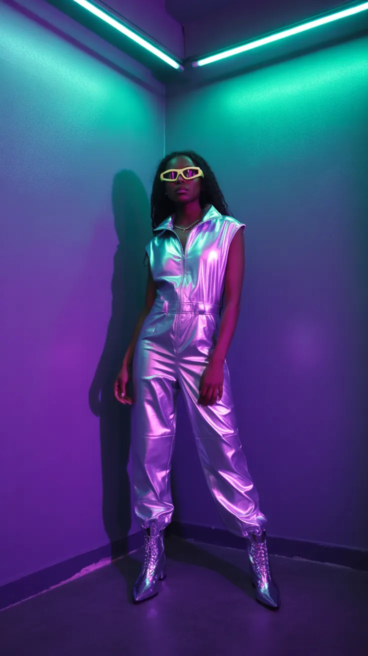 2. Futuristic Space Babe In Silver Jumpsuit And Neon Shades