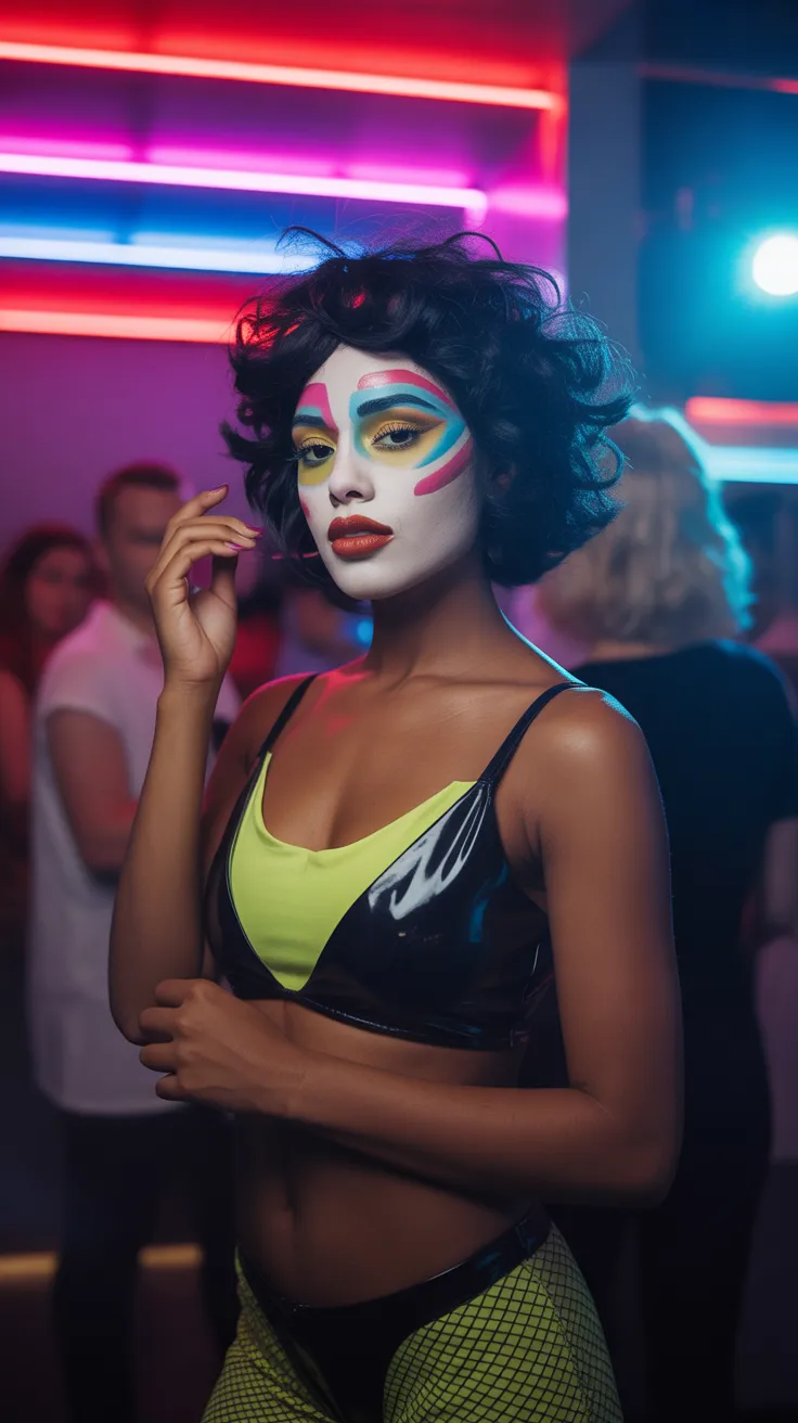This Halloween, channel your inner pop art comic character with bold colors and playful designs. Bright makeup and a vibrant wig can transform your look into something truly eye-catching. Embrace the fun and creativity of this style, making it a unique choice for your Halloween celebration.