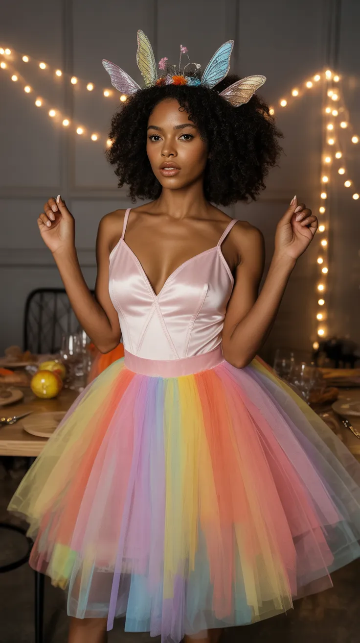 Transform into a stunning Butterfly Queen this Halloween! With a flowing tulle skirt and a crowned headband, you’ll radiate beauty and confidence. This costume is perfect for those who want to make a bold statement while celebrating their unique style.