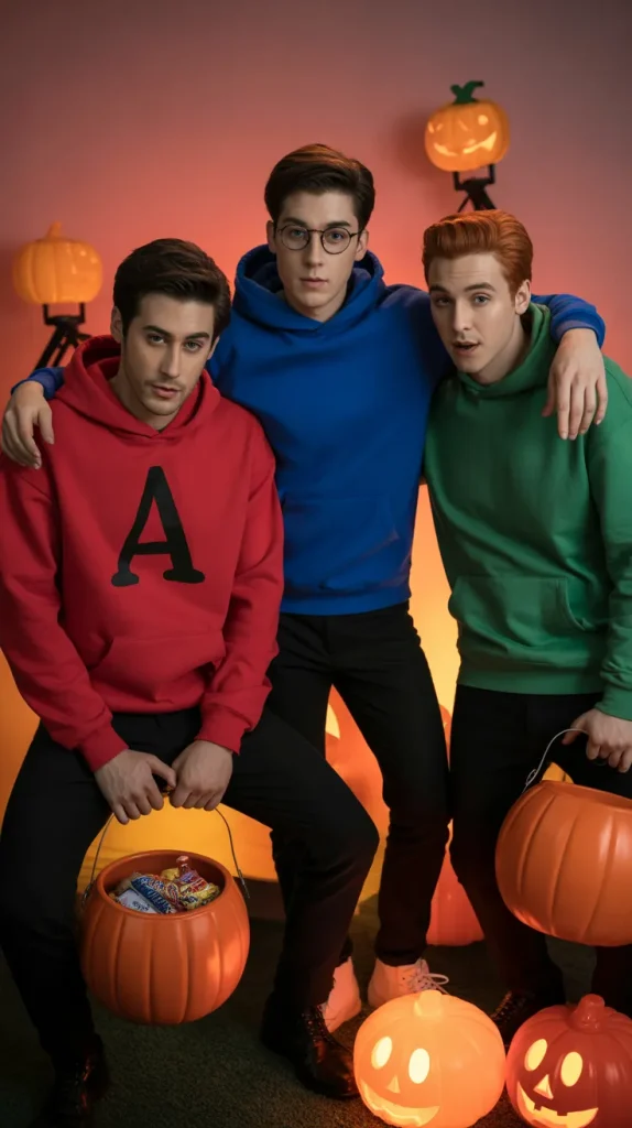 Talk about nostalgic fun The Chipmunks are always a win! With their colorful hoodies, glasses, and cheeky personalities, this 3 best friend halloween costumes idea is both comfy and adorable. You and your crew get to embody the playful chaos of Alvin, Simon, and Theodore, which makes for hilarious group photos. Bonus: add giant candy buckets to tie in the Halloween vibe. πΆ Youβll have people humming βChristmas Donβt Be Lateβ even though itβs spooky season.