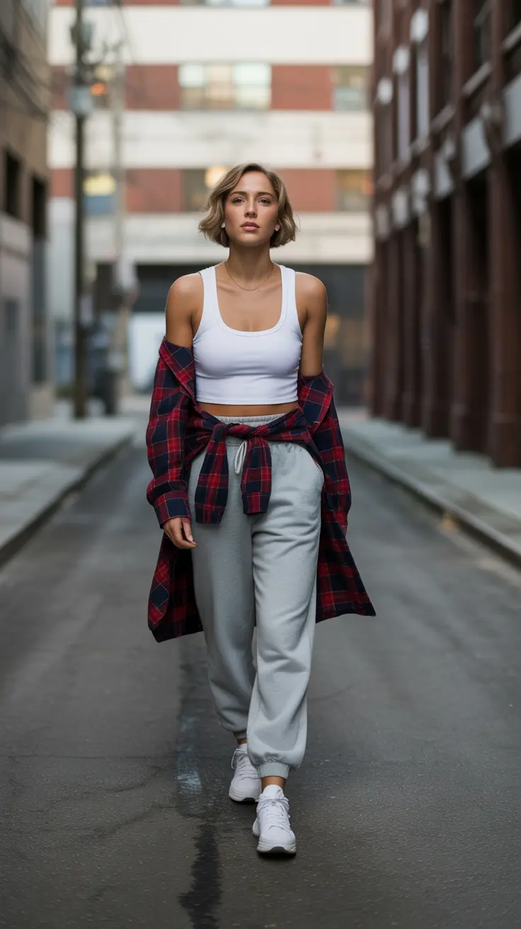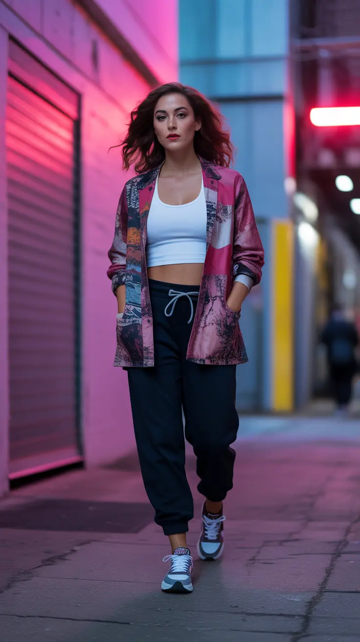 Graphic tees are a staple in streetwear fashion, and pairing them with high-waisted joggers creates a look that’s both stylish and comfy. This outfit is perfect for women who want to own the stage and the street. The bold fashion of a graphic tee adds personality, while the joggers keep things relaxed and ready for movement.