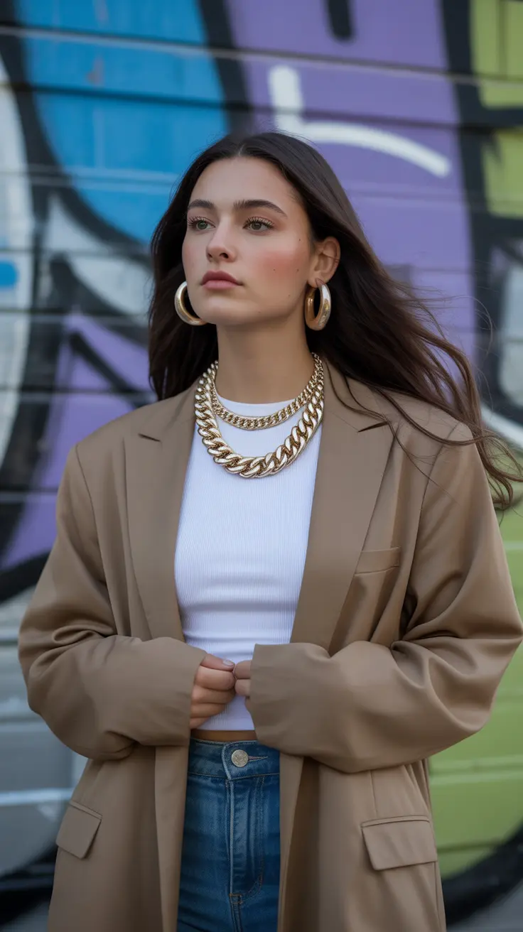 In the image, we see a woman rocking a basic white tee paired with stylish khaki pants. What truly catches the eye is her statement necklace, which adds a pop of color and personality. This kind of outfit inspo shows how performance outfits don’t have to be complicated; sometimes, less is more.