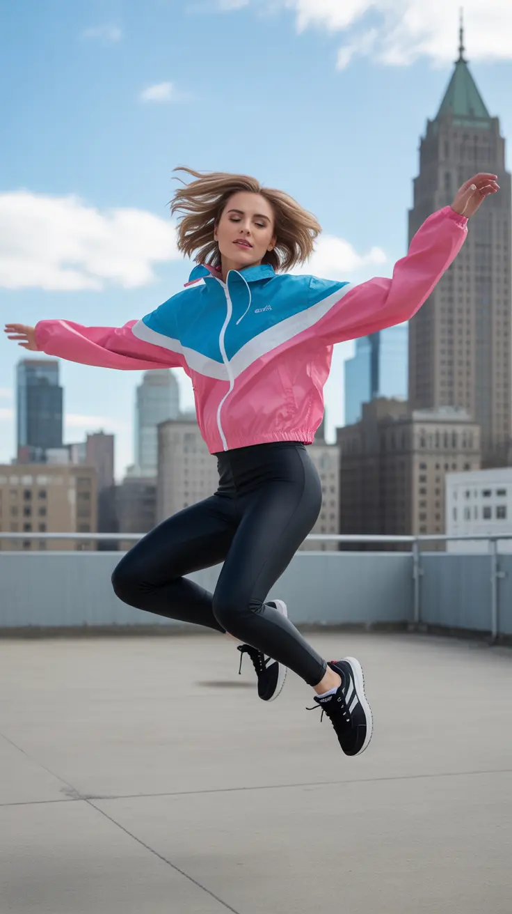 Colorful windbreakers paired with leggings create a striking look that screams urban style. This outfit is perfect for women who want to own the stage and the street. The vibrant colors of the windbreaker catch the eye, making it a standout piece in any dancewear for women collection.