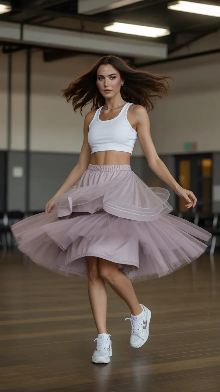 In the image, we see a dancer confidently rocking a layered skirt that flows beautifully with each step. The combination of a fitted crop top and a flowing skirt strikes a balance between bold fashion and practicality. This outfit inspo is ideal for those who want to own the stage and the street.