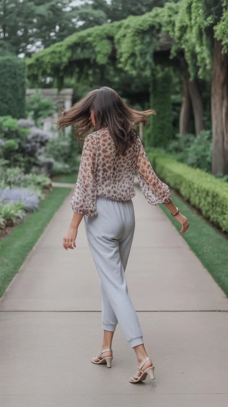 Accessorizing with heels, like the pointed ones seen in the image, adds a refined touch. This combination proves that jogger pants can be dressed up effortlessly, allowing women to embrace a casual-chic look.